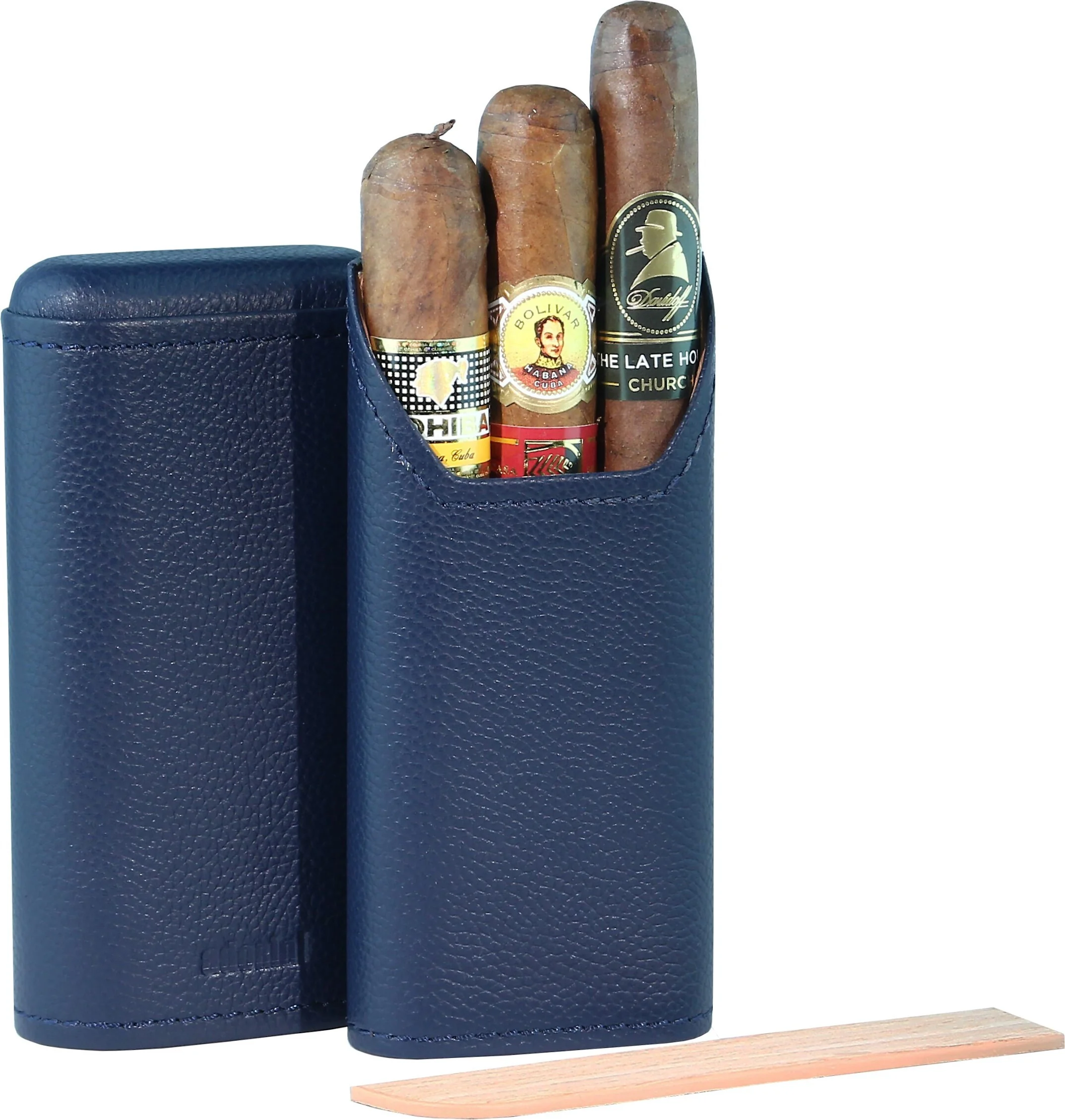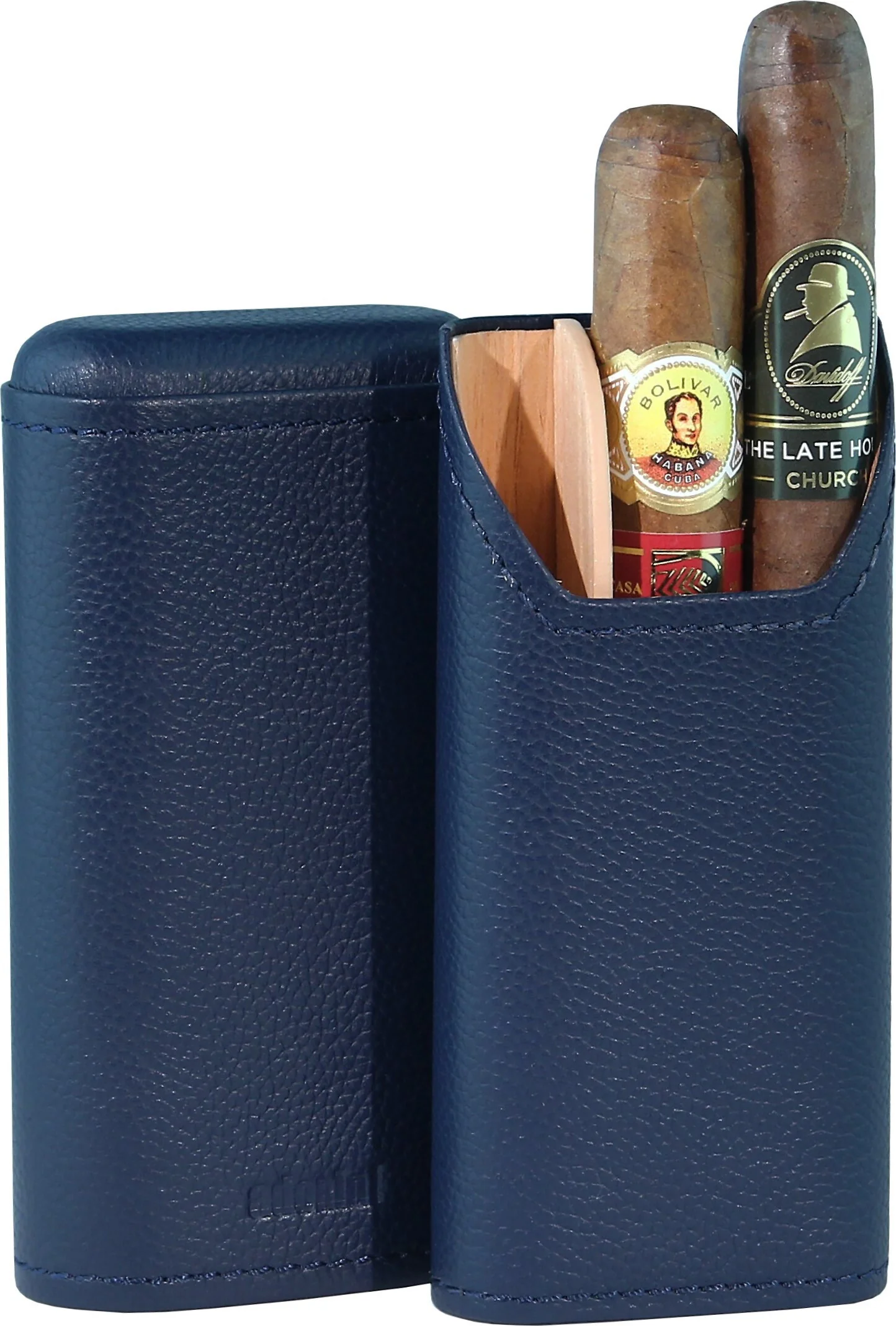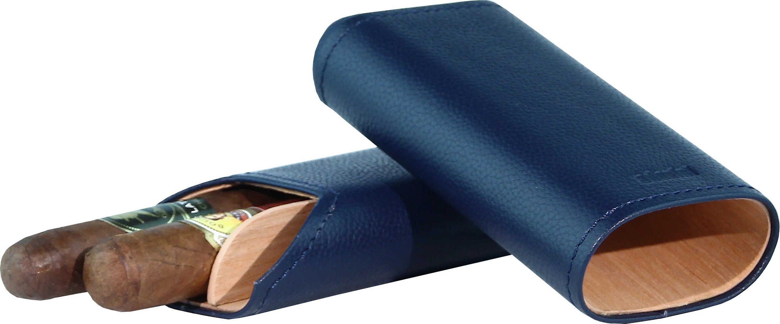 adorini Cigaretui i ægte læder til 2-3 cigarer, blå