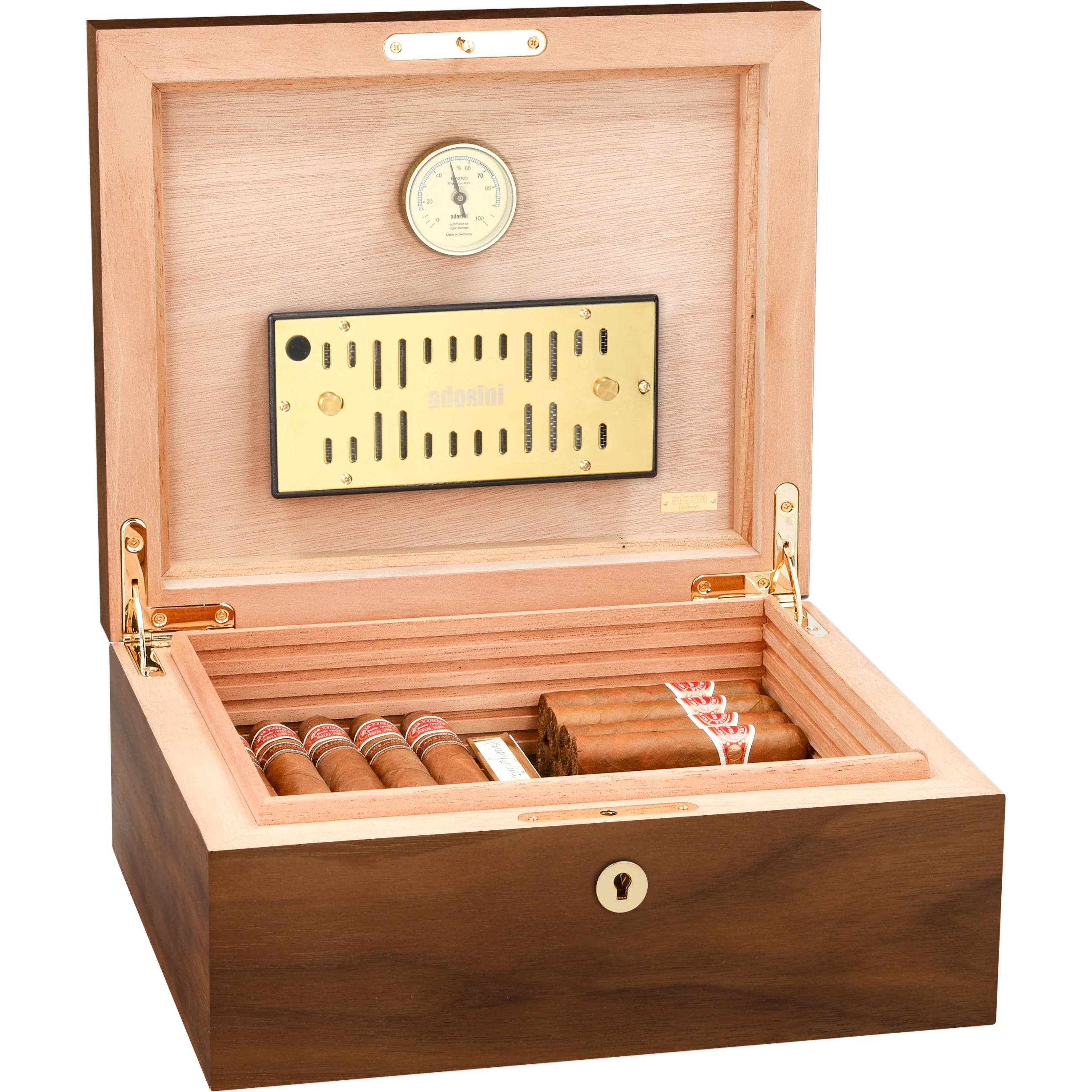adorini is one of the world's leading humidor brands. Its products are characterized by high-quality materials, sophisticated design, and innovative functionality. Precise hygrometers and humidification systems from adorini can also be found in the world's most exclusive humidors. Cigar aficionados, restaurateurs, and collectors appreciate adorini for its durable quality, stylish craftsmanship, and reliable precision.