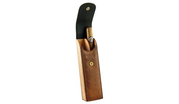 adorini pocket vintage lædercigaretui 2 cigarer brun med etui til klipper eller lighter