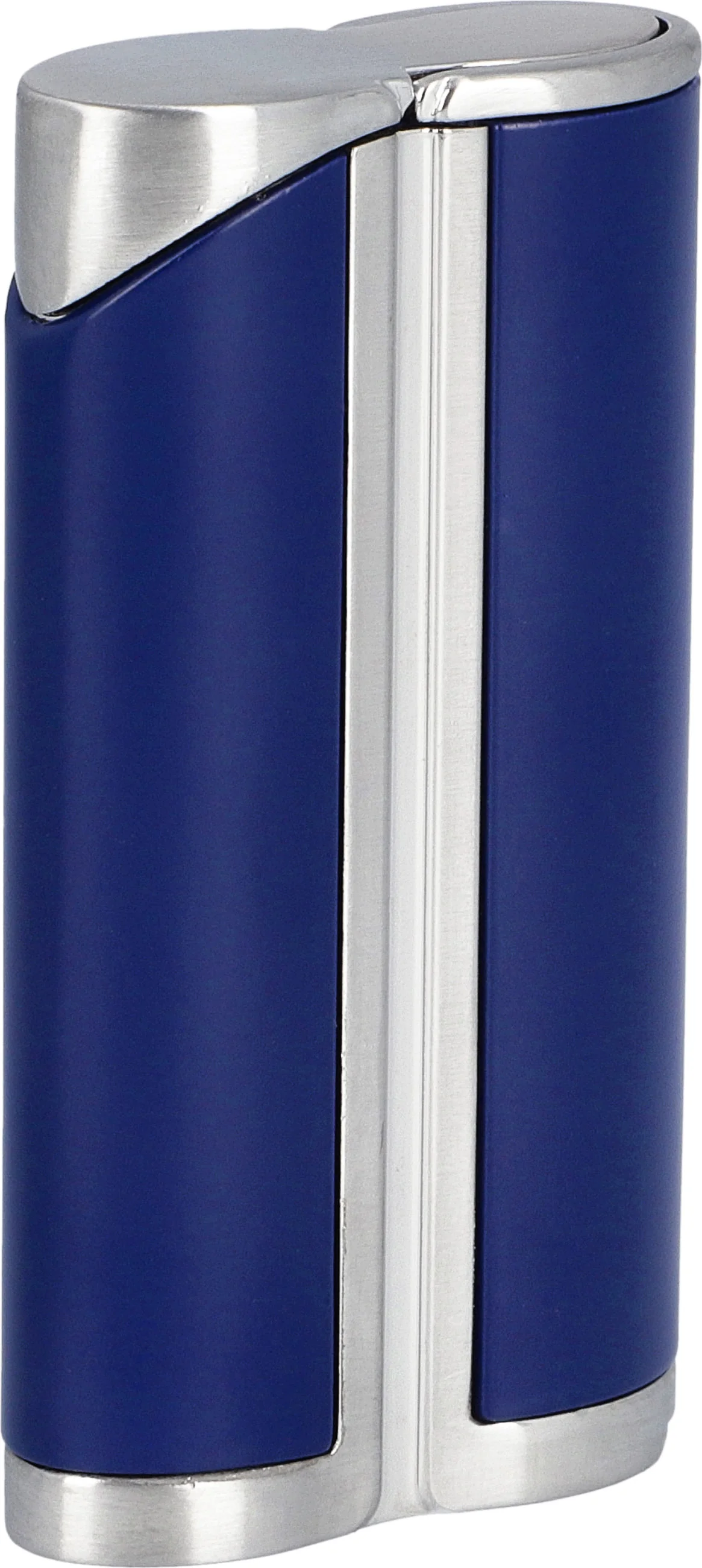 adorini Single Jet Curve Lighter Blå / Satin Sølv inkl. cigarstik
