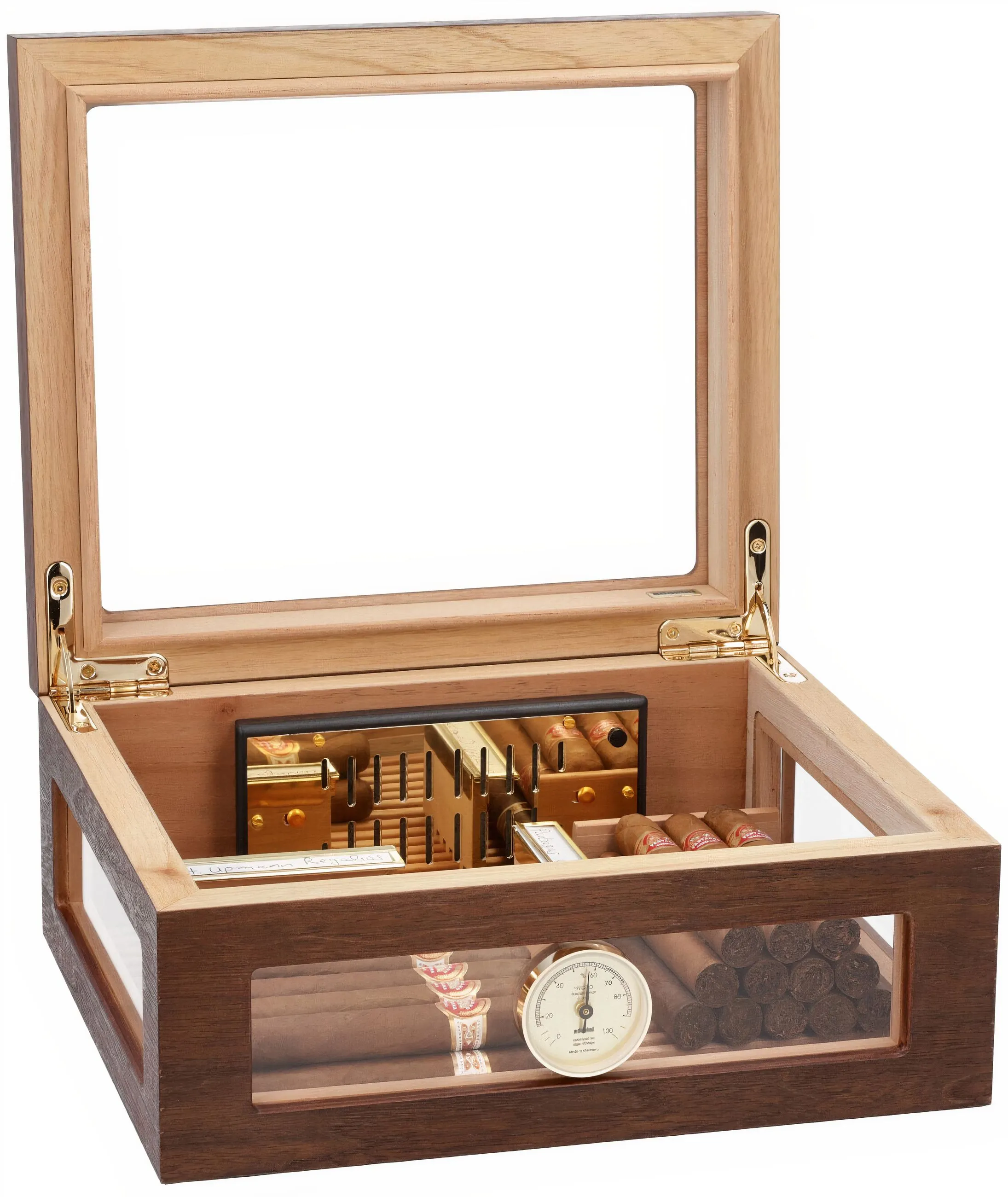 Meget godt produkt, værdi for pengene med et flot design. Mit produkt ankom dog med et defekt hygrometer, og de indre dele af kælderen var ikke i deres originale kasse, som om det var en returnering fra en anden kunde.