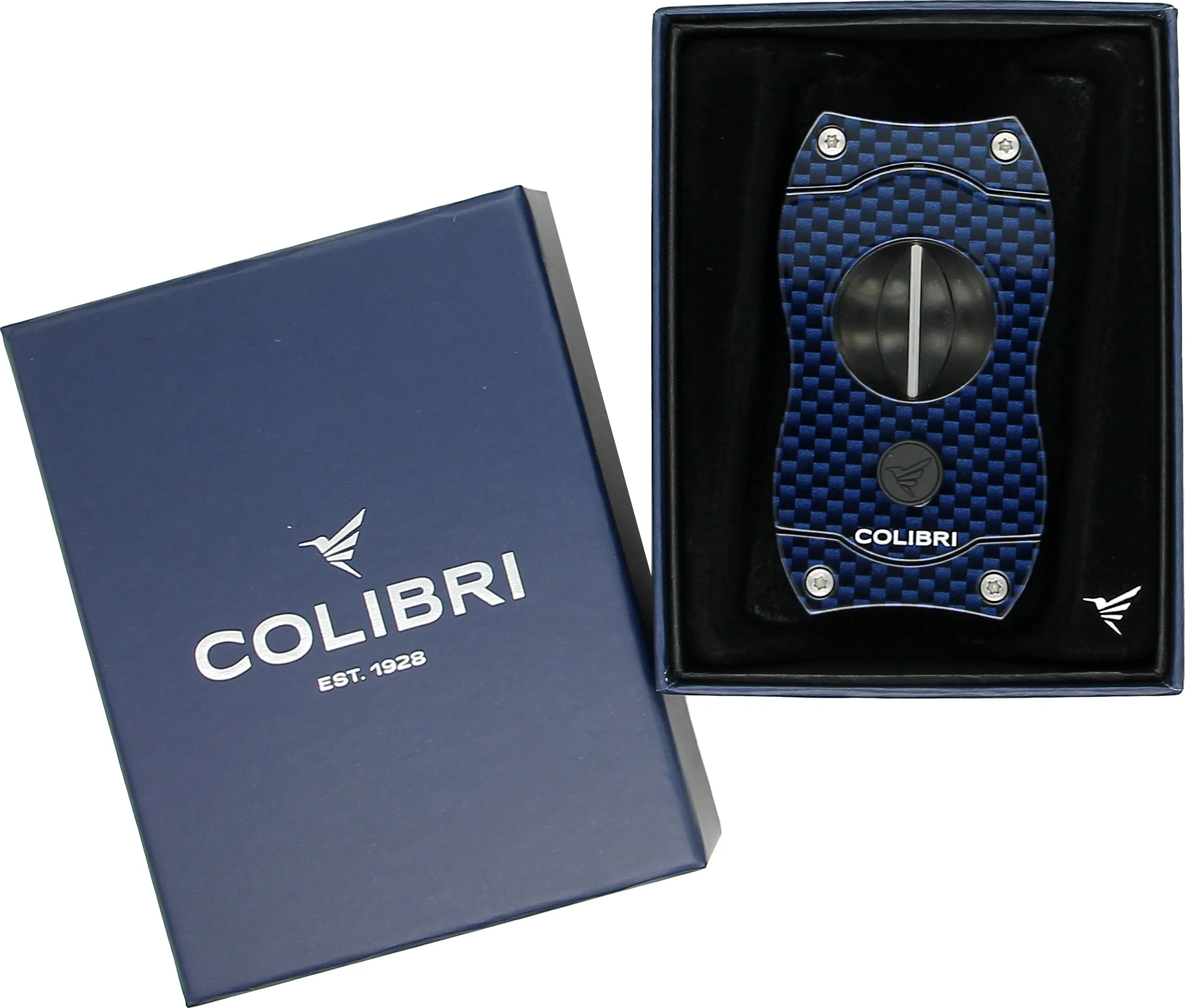 Patenteret og holdbart produkt fra det internationalt anerkendte mærke Colibri. Denne cigarklipper med traditionelt hak kombinerer harmonisk design og funktionalitet. Det moderne kulfiber-look og den elegante blå farve gør den til mange cigarelskeres yndlingsprodukt. Bladet i rustfrit stål går ubesværet gennem cigarhovedet og giver en V-formet åbning. Dette produkt er også en vidunderlig gave, da det leveres i en attraktiv gaveæske. Producenten garanterer funktionaliteten i 2 år.
