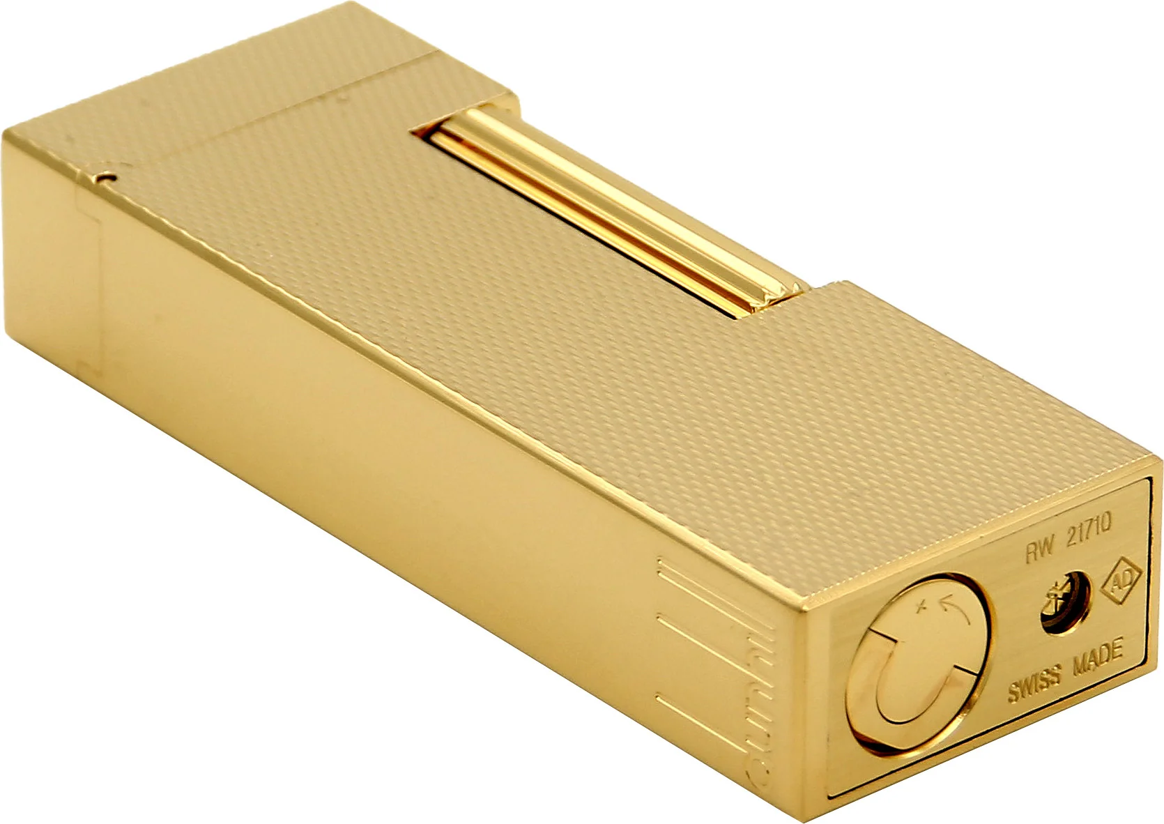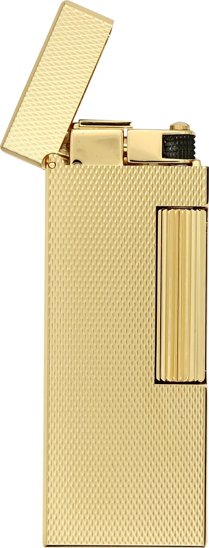 The combination of finely patterned surfaces on the front and back and highly polished, smooth sides gives the lighter its elegant, distinctive look. The Dunhill brand logo is finely engraved on one side. The ignition is protected from dust and dirt by a cover, which further increases the service life of the mechanism.