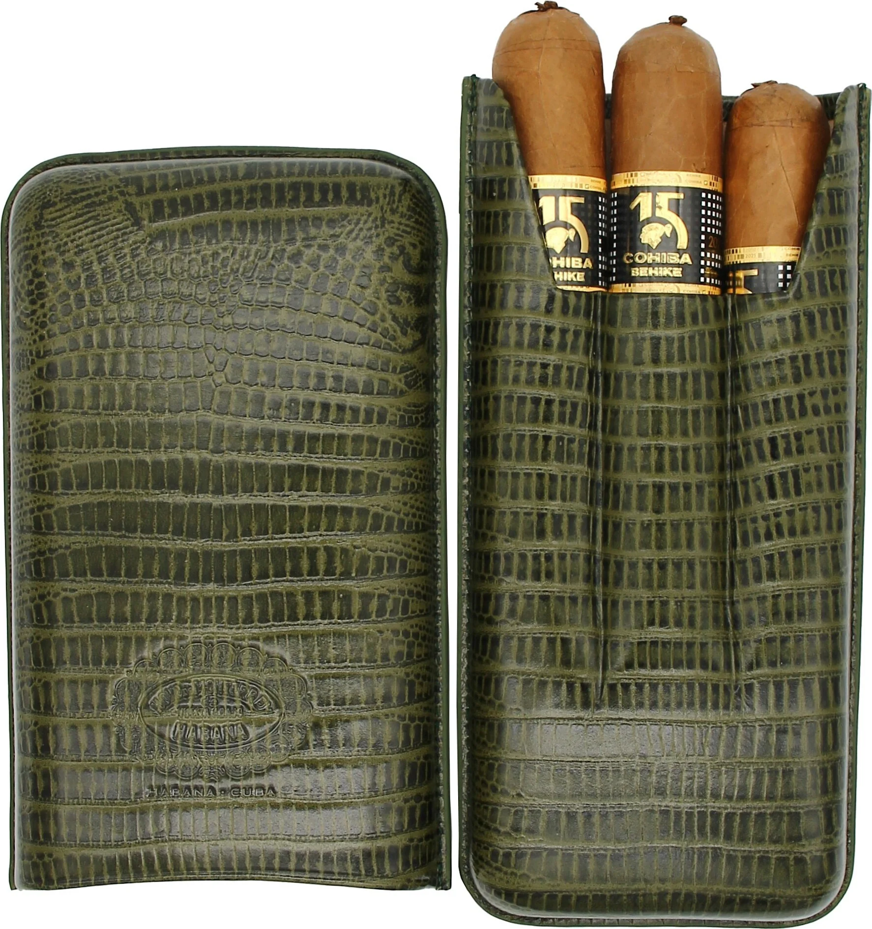 Hoyo de Monterrey Leather Cigar Case, Green, for 3 Cigars