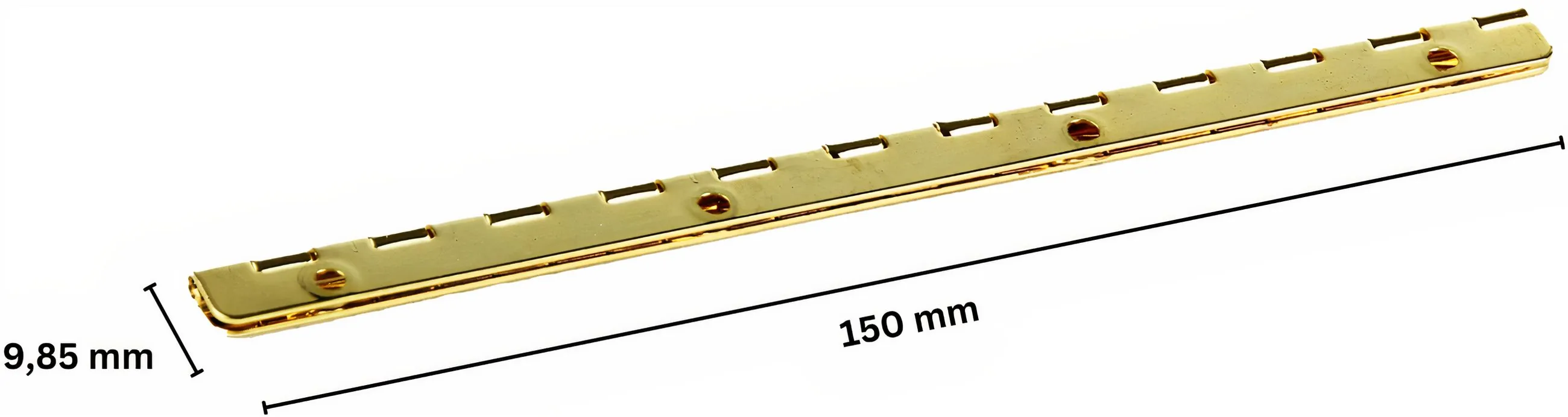 Humidor-hængslet i guld måler 15 cm i længden og har en smuk, blank, gylden finish. Det er lavet af rustfrit stål af høj kvalitet. Hængslet er ideelt til brug i humidorer, uanset om det er til reparation eller opgradering af en eksisterende humidor eller til dem, der ønsker at bygge deres egen humidor.