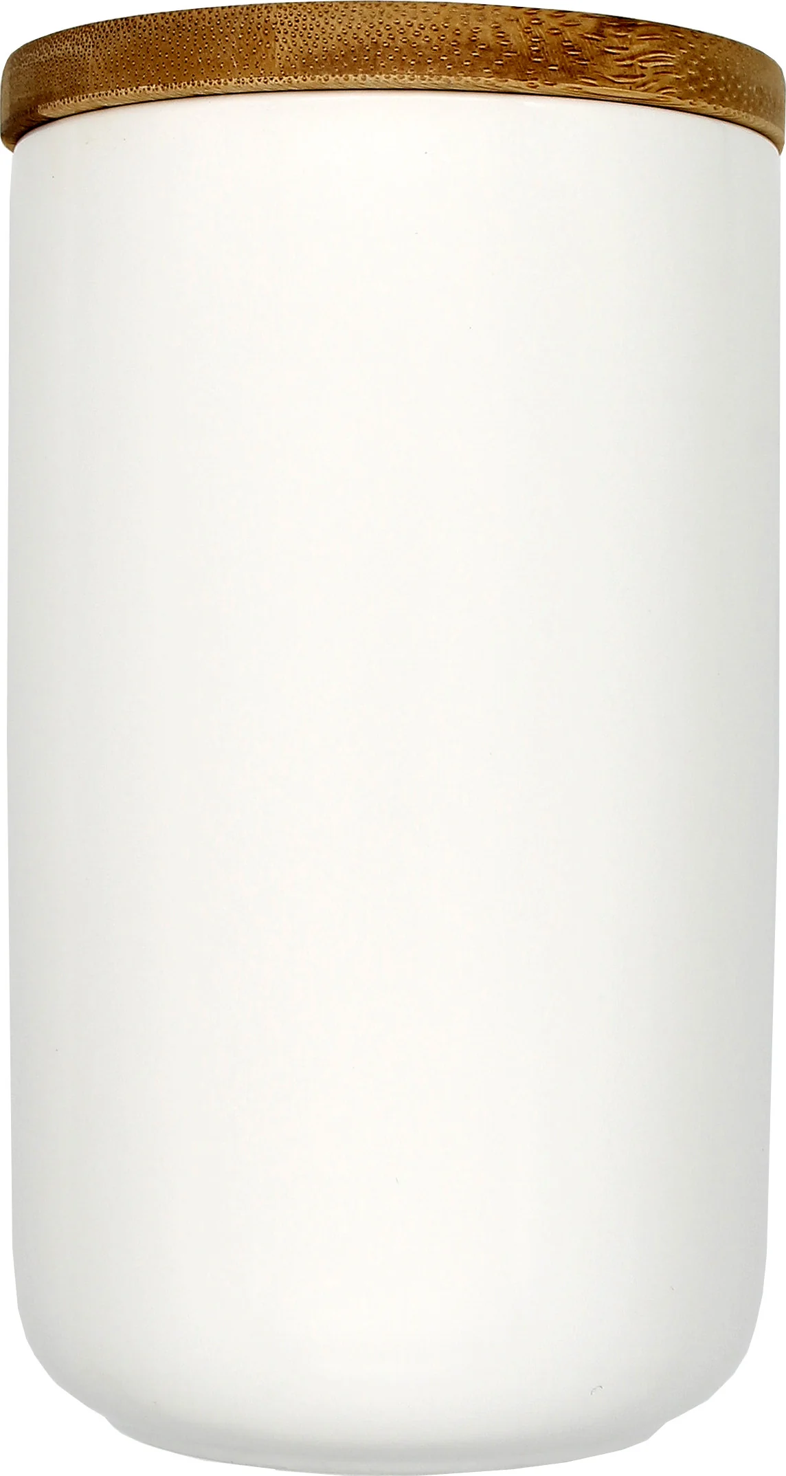 Hvid porcelæns cigaretkrukke med træplade låg
