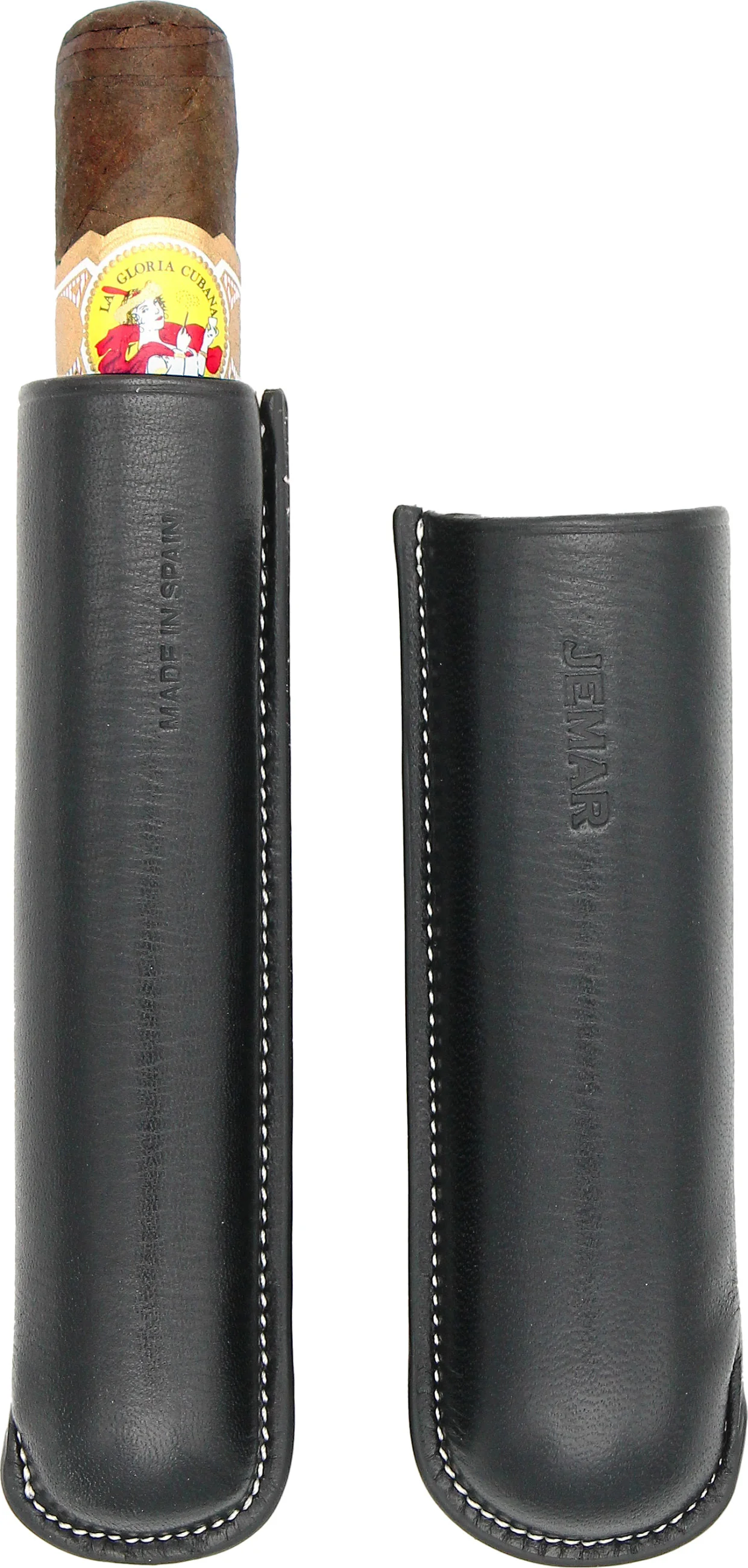 Jemar læder cigaretui til en cigar, sort er et stilfuldt tilbehør til entusiaster, der værdsætter kvalitet og håndværk. Fremstillet af ægte læder i tidløs sort med lette dekorative syninger, imponerer det med sin elegance og funktionalitet. Indvendigt er etuiet foret med let, glat læder, som ikke kun skaber et sofistikeret udseende, men også giver ekstra beskyttelse til cigaren.