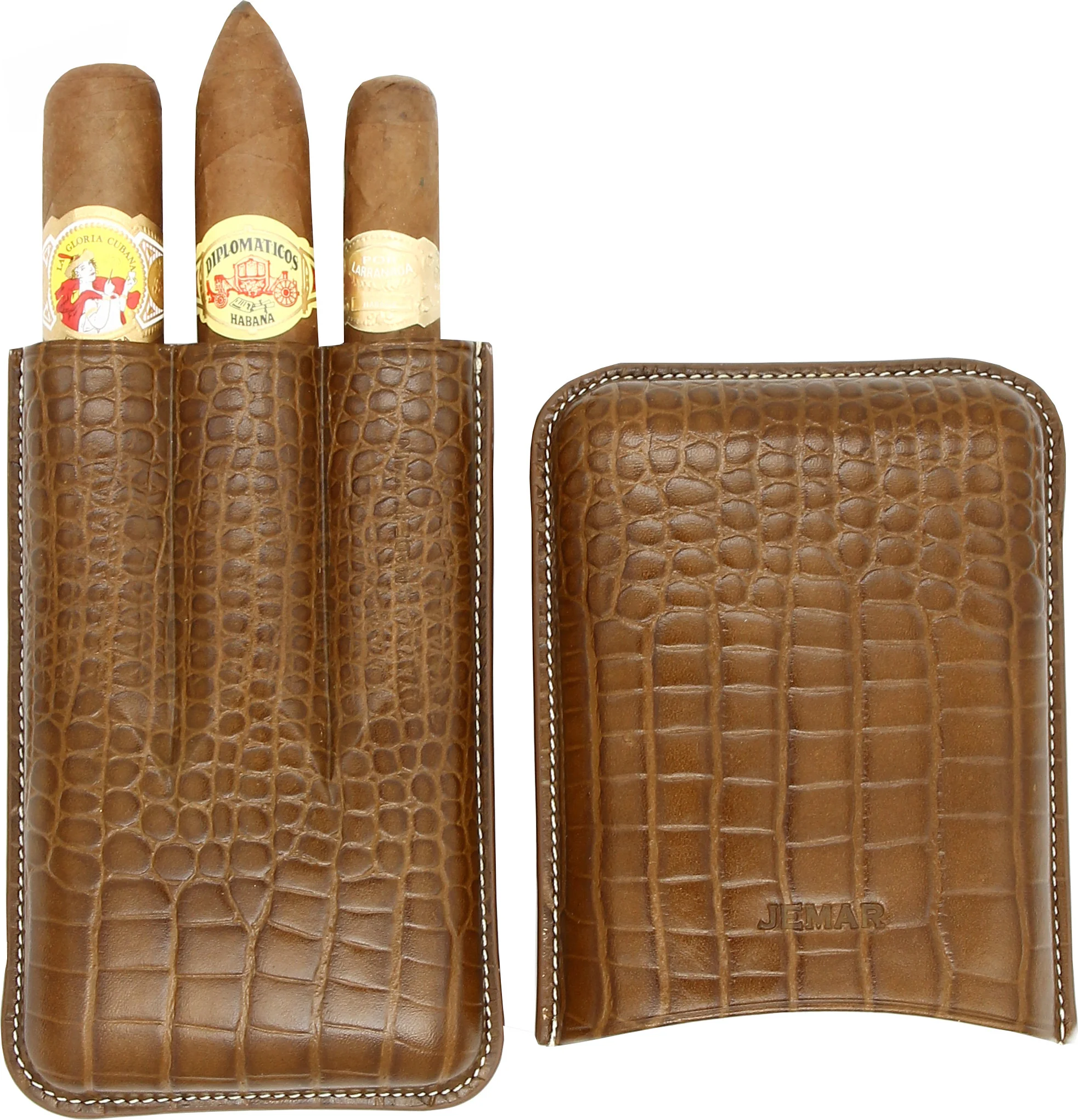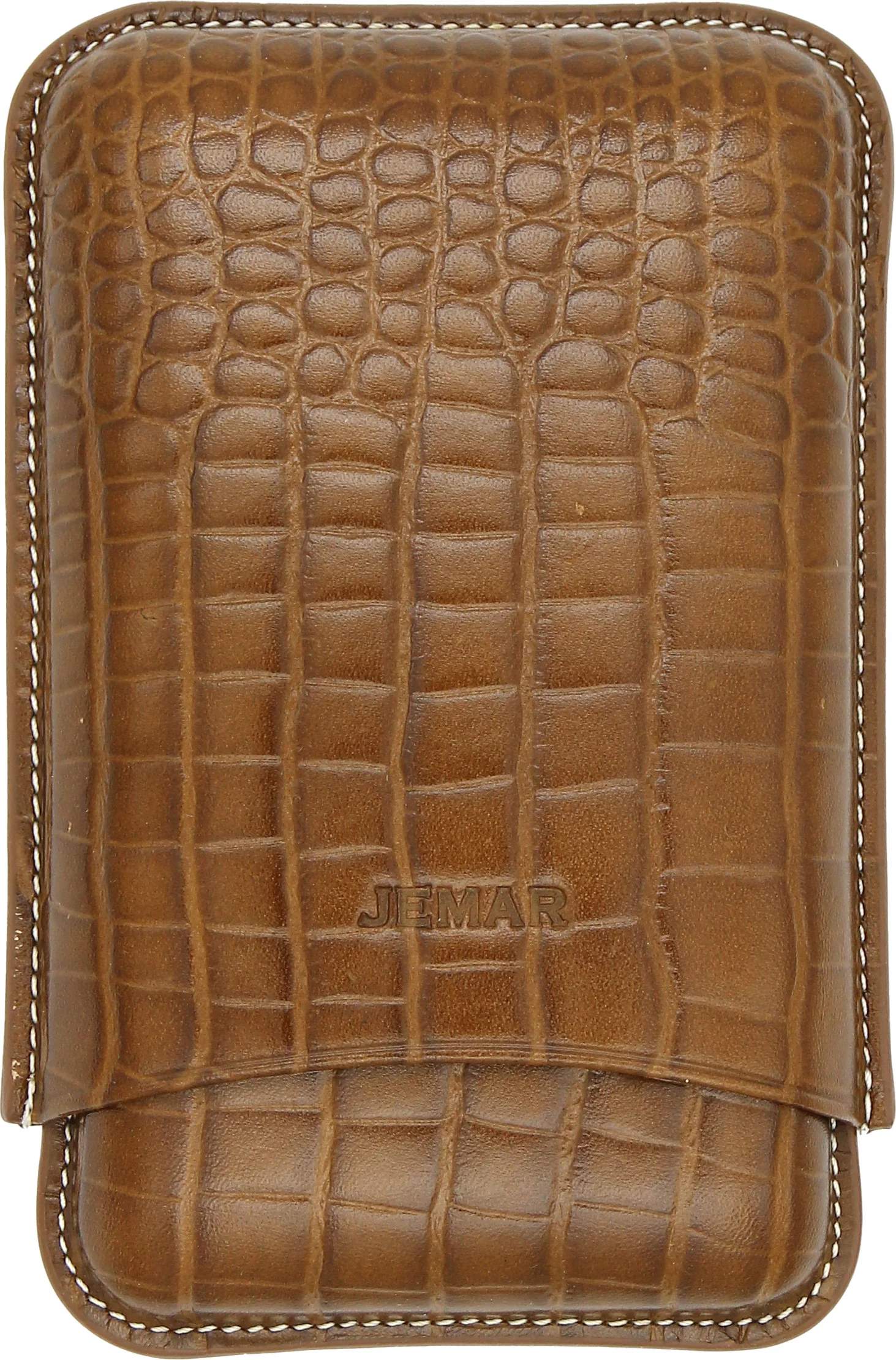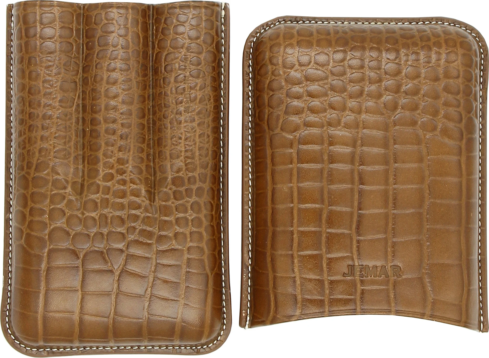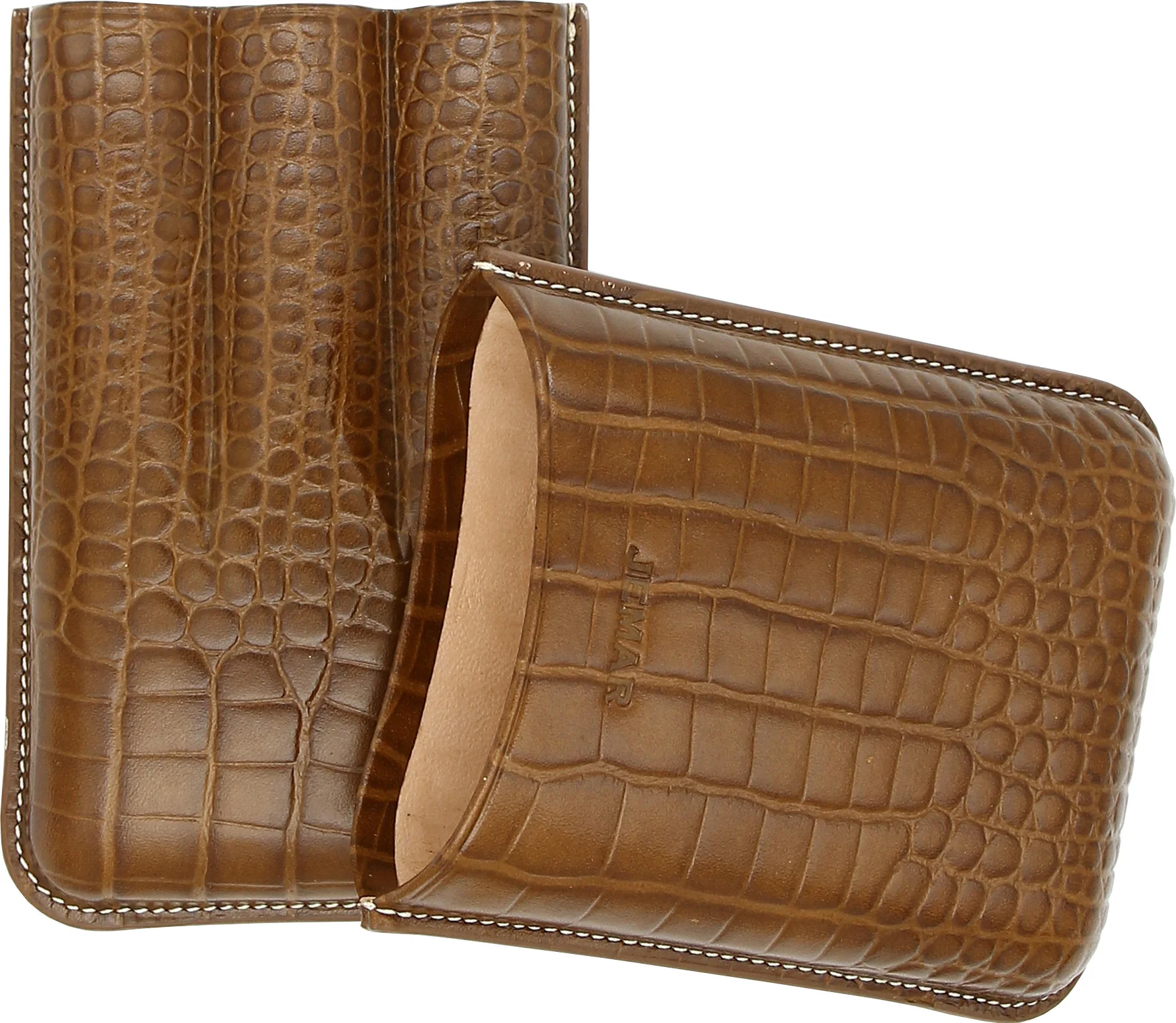 Jemar læder cigaretui til tre cigarer, Krokodilleskind, Kamel