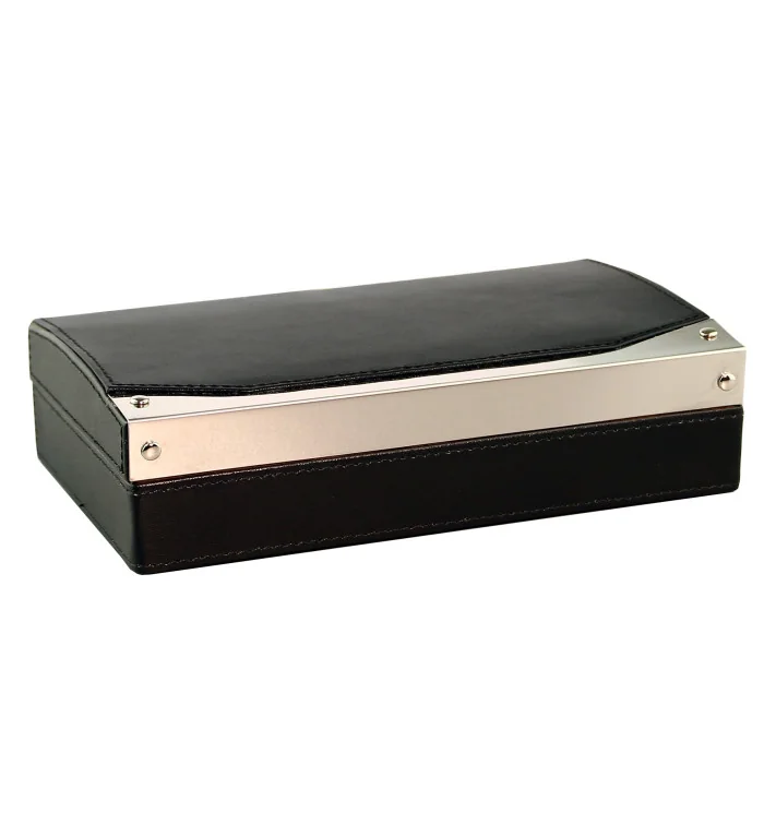 Rejsehumidor lavet af sort læder med cigarklipper - stilfuld opbevaring til på fartenDenne