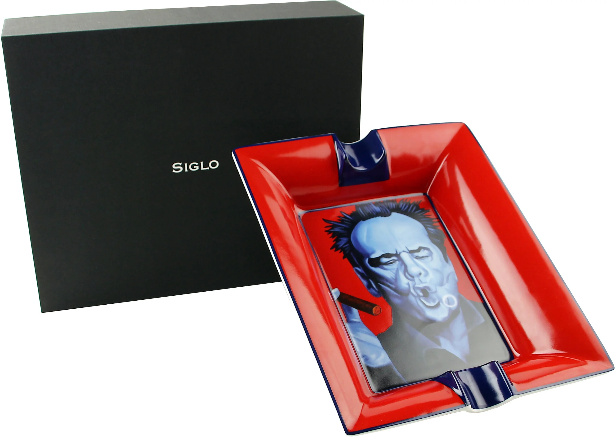 **Siglo Ashtray Jack Nicholson** er et slående cigaraskebæger i levende rød og blå med et ikonisk billede af Jack Nicholson, der blæser røgringe med en cigar i hånden. Nicholson er kendt for sin livslange forbindelse til cigarer og er indbegrebet af kunsten at nyde en cigar. Dette ekstraordinære askebæger er et modigt statement og fanger ubesværet opmærksomheden.