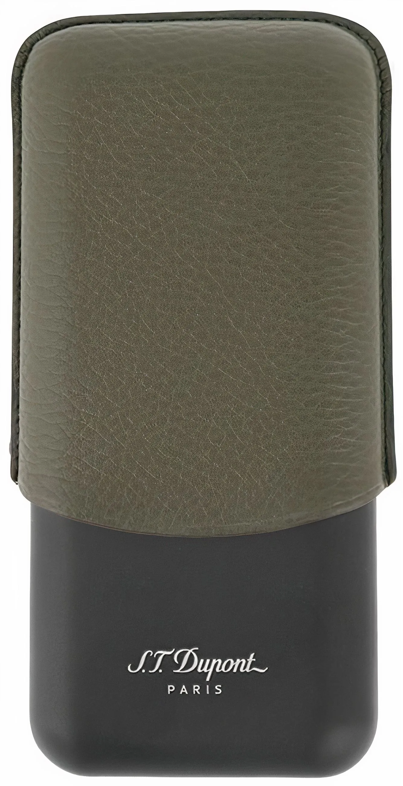 S.T. Dupont cigaretui til 3 cigarer, khaki sort S.T. Dupont cigaretui til 2 cigarer i mat sort og khaki er et elegant og moderne udseende cigaretui fra det franske luksusmærke S.T. Dupont. Overdelen er lavet af højkvalitets farvet okseskind, der er forarbejdet i Spanien og er præget med "Made in Spain" på indersiden. Ydersiden af læderet har en dekorativ søm, der understreger cigarkassens elegante helhedslook. Den nederste del af kufferten er lavet af metal, som er ideel til transport af tre cigarer, da den er tryk- og brudsikker. Et særligt træk er hakket i den øverste del af metalunderdelen, som forhindrer cigarerne eller en enkelt cigar, der er tilbage i etuiet, i at rulle frem og tilbage. Diameteren på urkassen i rustfrit stål er 2,45 cm og kan derfor rumme tre cigarer med en maksimal ringmåler på 61. Længden på urkassen kan varieres fra cirka 160 mm til cirka 220 mm, når den er helt tilbagetrukket. Varen leveres i repræsentativ emballage, hvilket gør den ideel som gave. Gør en selvsikker og moderne-sporty aficionado glad med denne trofaste følgesvend. Et garantikort og plejevejledning fra Dupont medfølger i etuiet. Design, materialer og specielle funktioner: