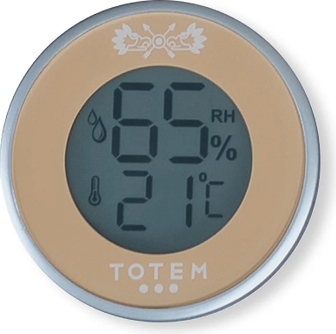This digital hygro-thermometer can serve as a valuable replacement part for Totem humidor owners or can be installed in humidors from other brands. It displays the current relative humidity and temperature, which are important indicators of the climate inside your humidor. Its round shape and space-saving design fit into even the smallest humidors without sacrificing any volume. It is made of metal and plastic and is powered by a CR2032 button cell battery, which is included.
