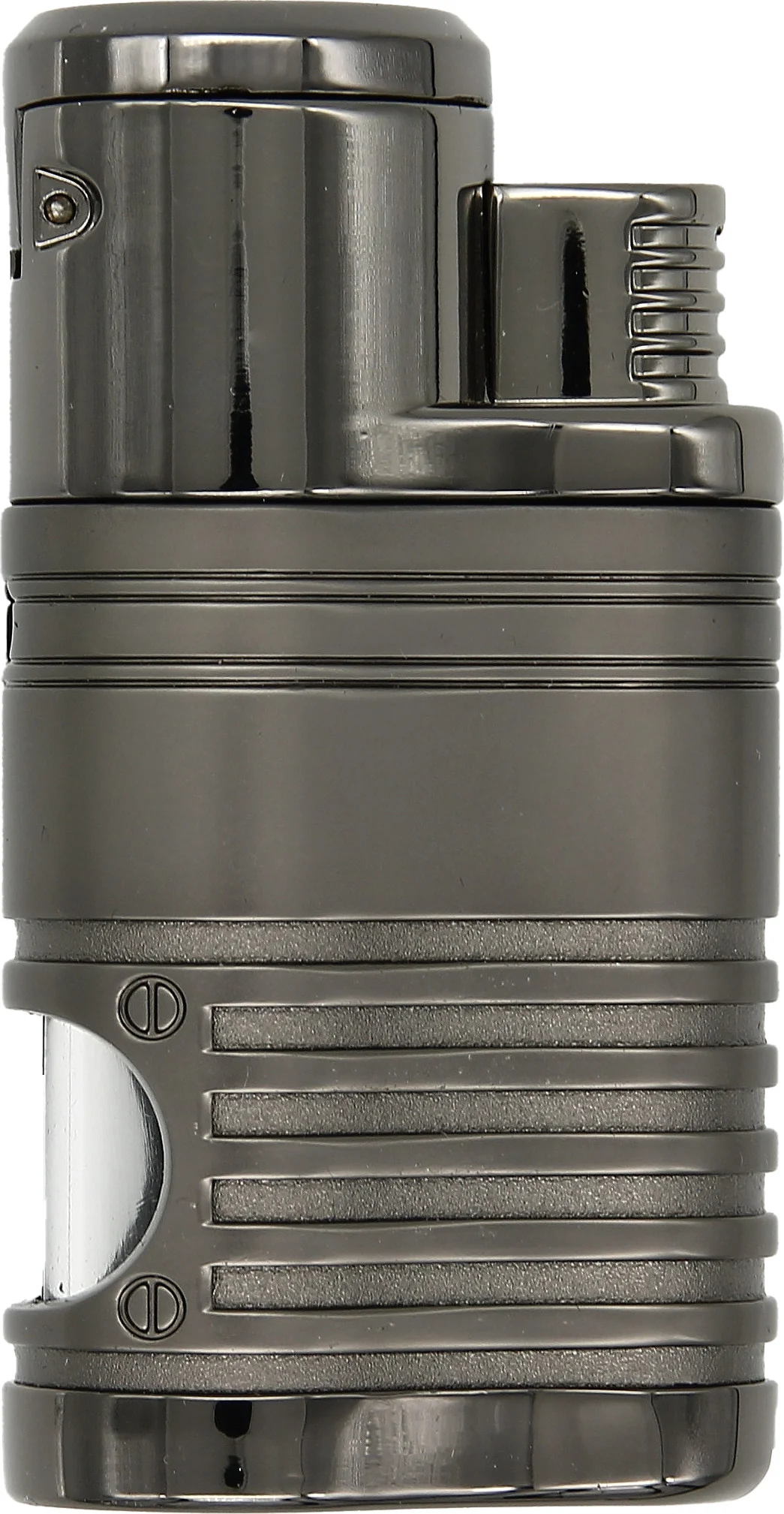 Lighterens fire jetflammer springer i gang med et enkelt tryk med tommelfingeren, og de smelter sammen for at skabe den ultimative vindresistente flamme. Du vil kunne bruge den intense varme til at tænde dine cigarer med uovertruffen hastighed og effektivitet uanset de irriterende vindstød. Der er også en praktisk cigarklipper , der kan foldes ud fra bunden, så du kan klippe og tænde dine cigarer med dette ene værktøj, der er nemt at have med.